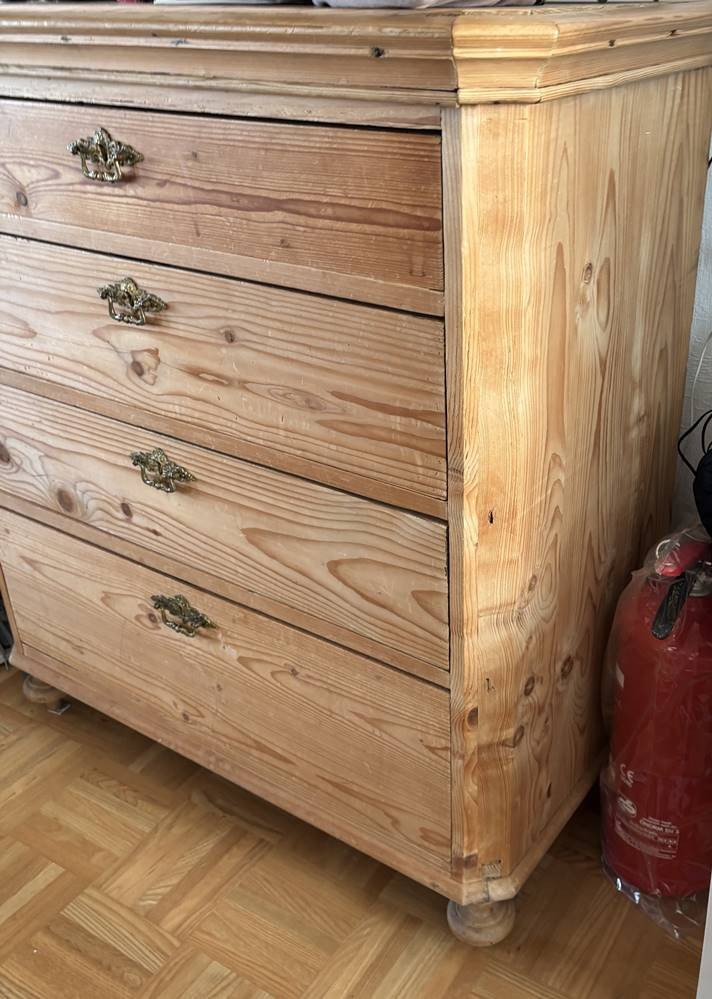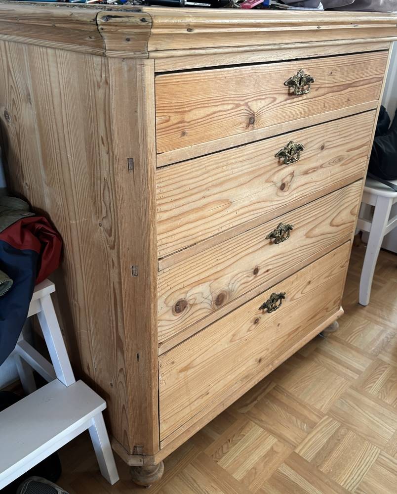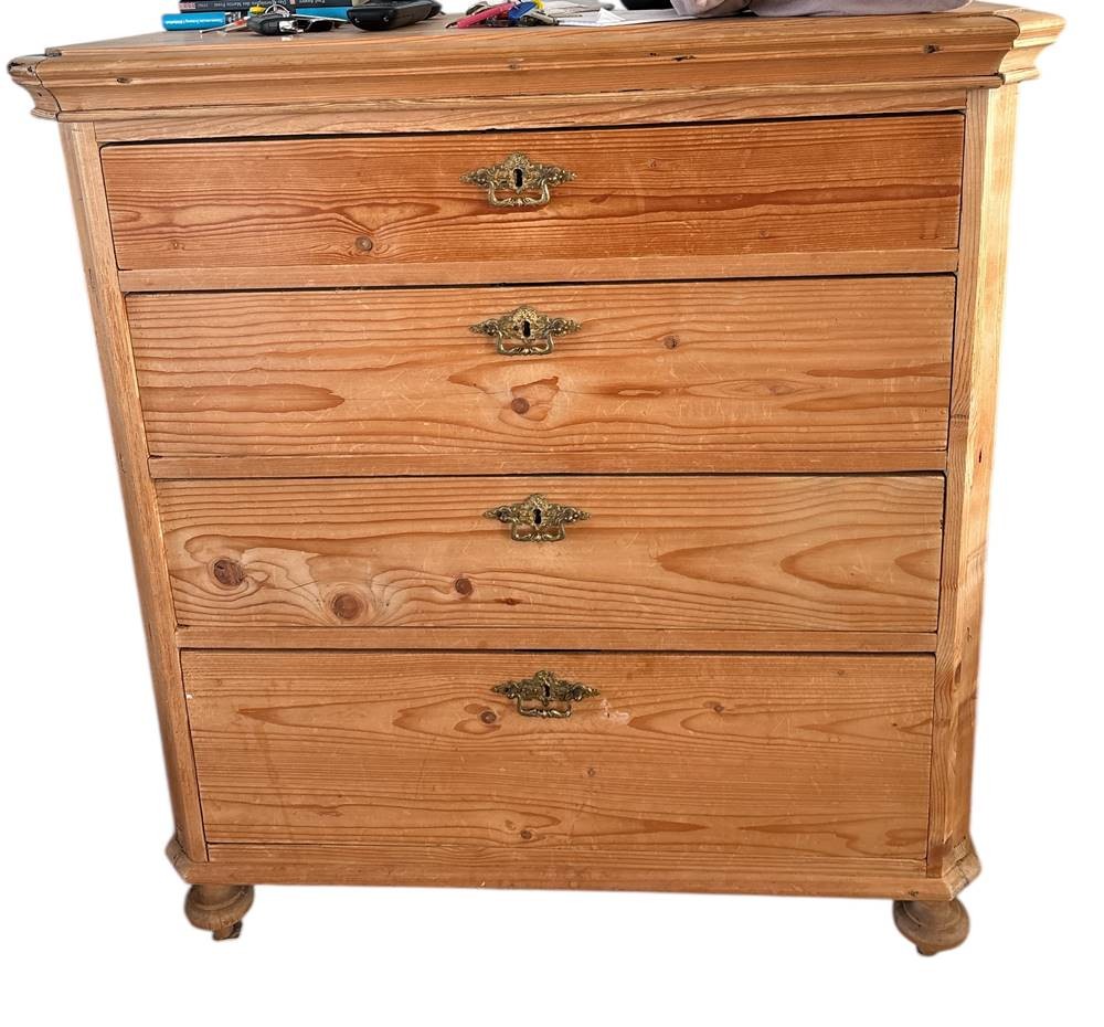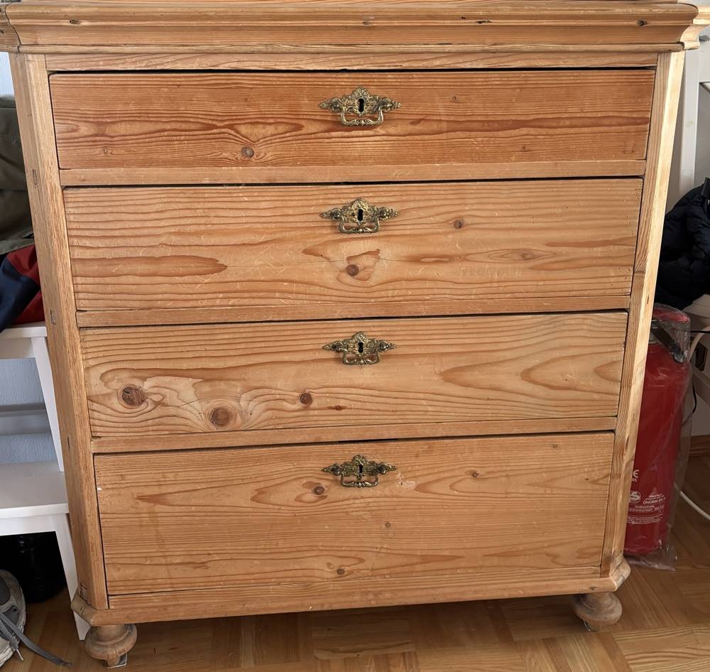 4-schübige Weichholzkommode, natur, H-97 cm, 90x47 cm, Gebrauchsspuren [1]