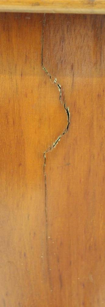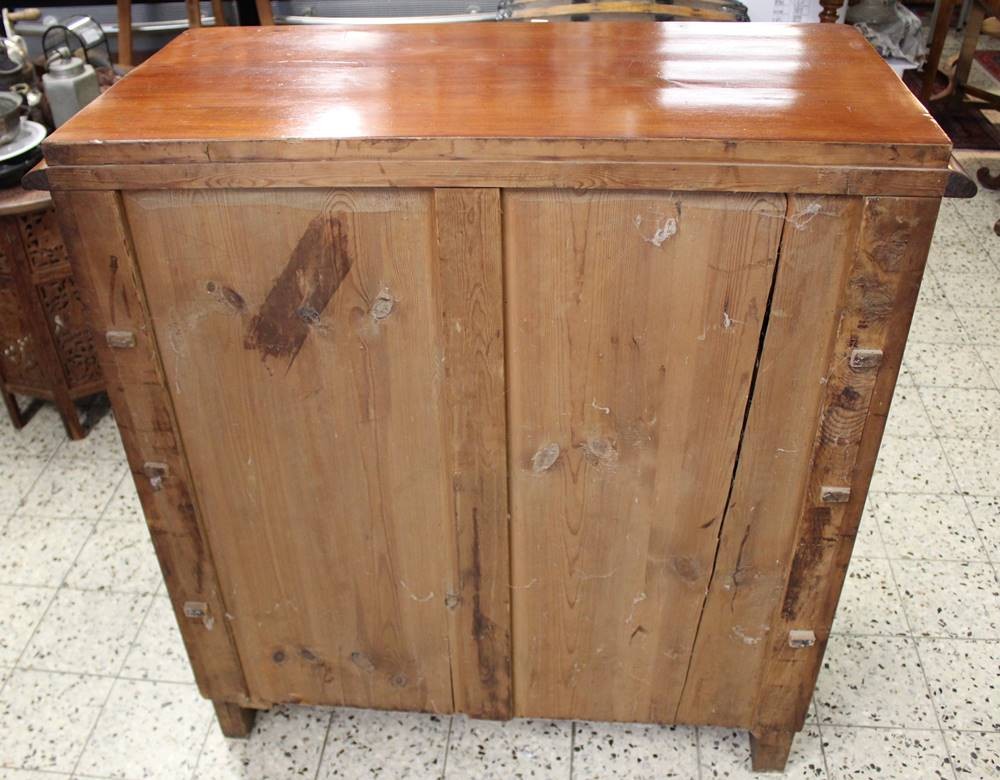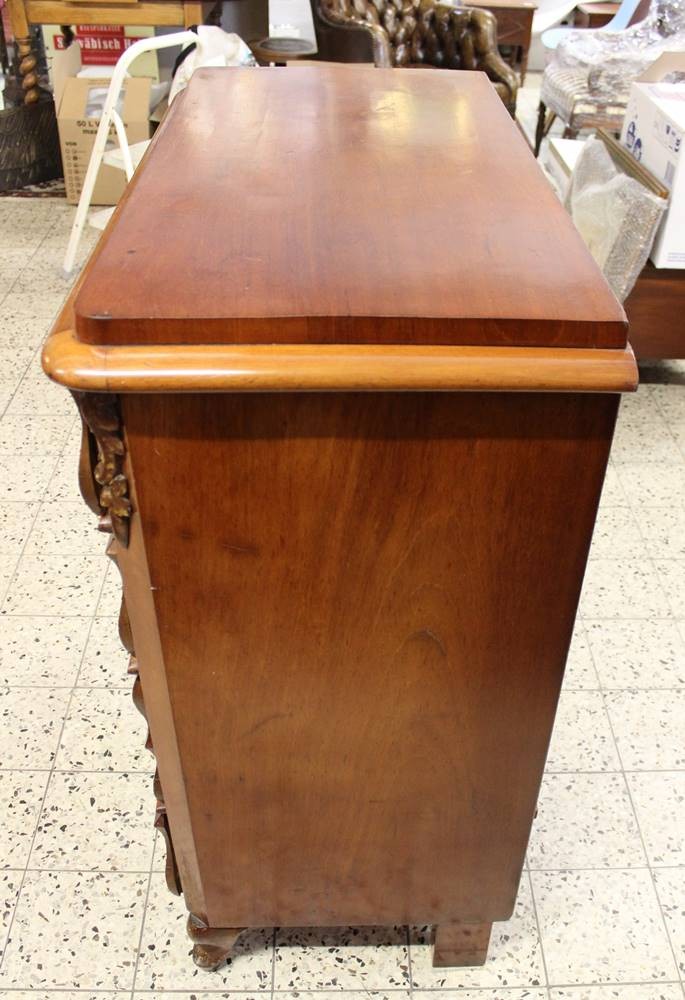 4schübige Kommode um 1900, links Altriss, sonst guter Zustand, H-103cm B-98,5m T-49,5cm. [1]