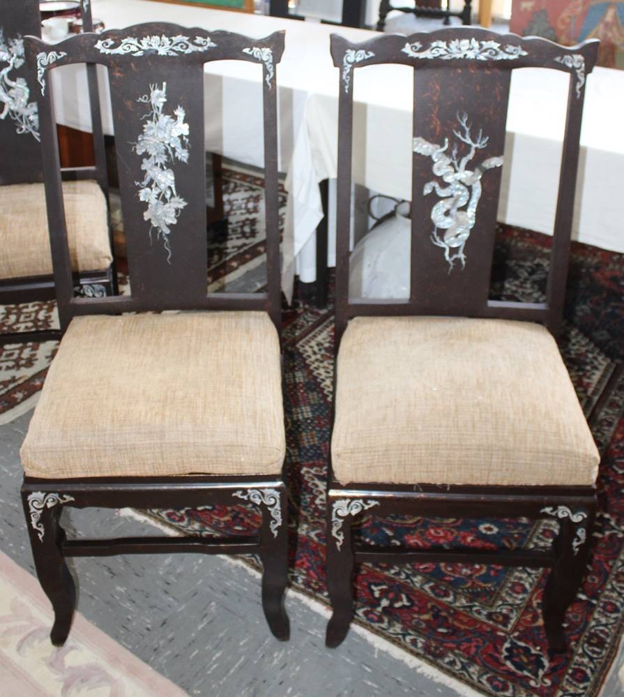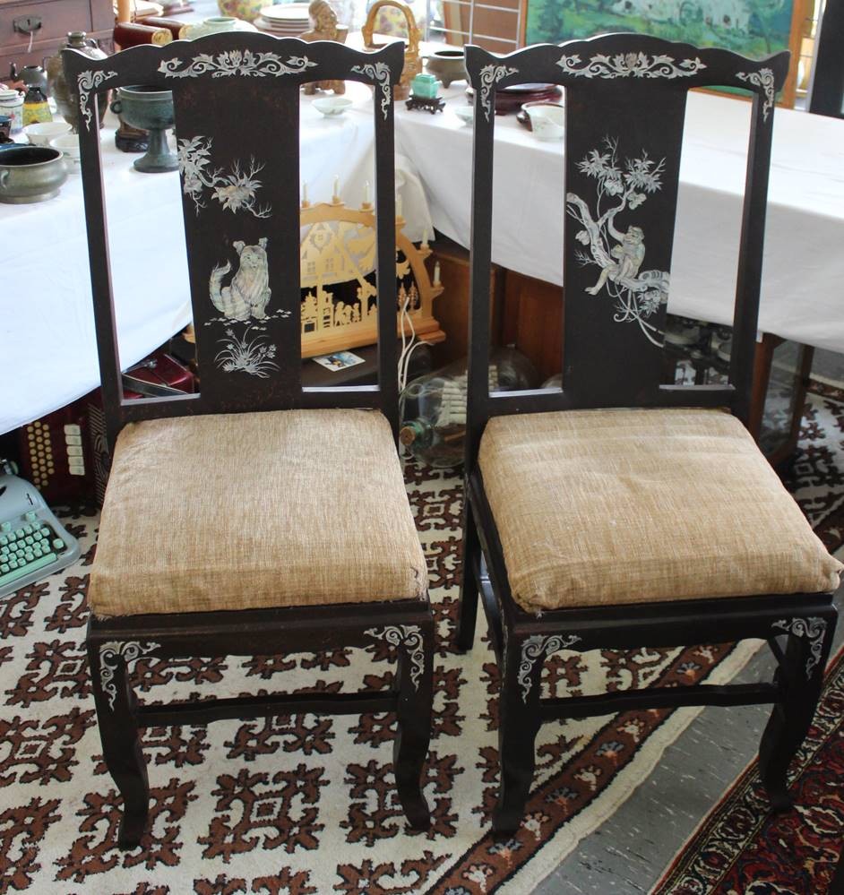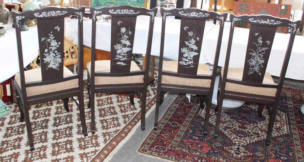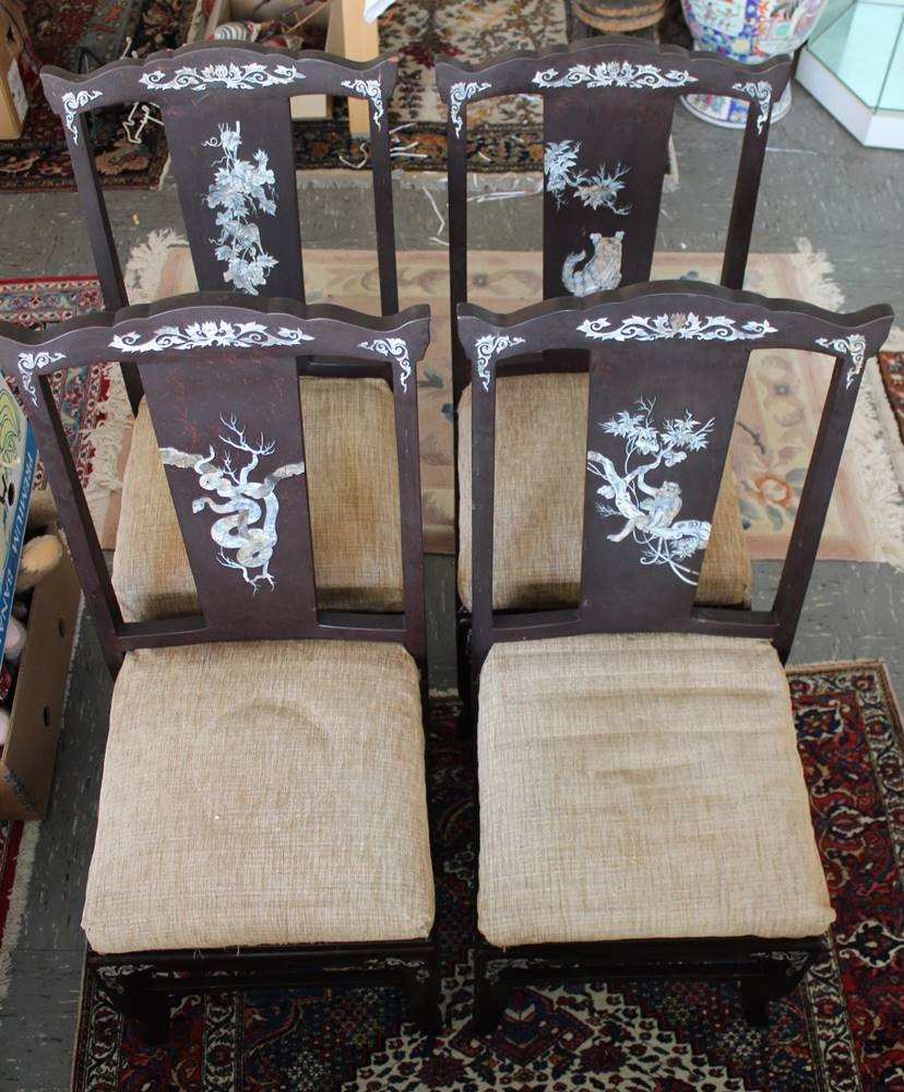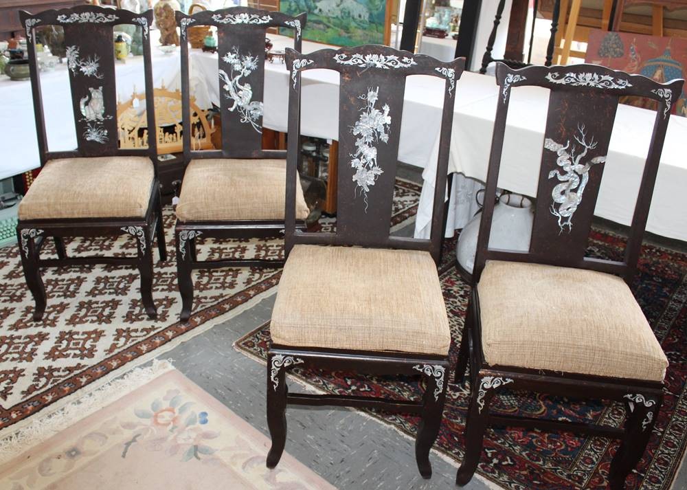 4x Stühle, China, Perlmuttauflagen, Lack, teilw. Gebrauchsspuren, je ca. H-109,5cm B-47cm Sh-47cm [1]