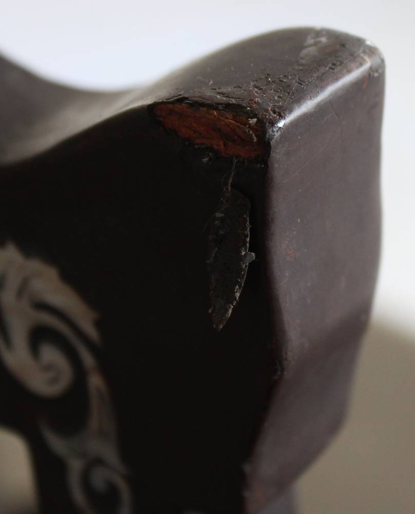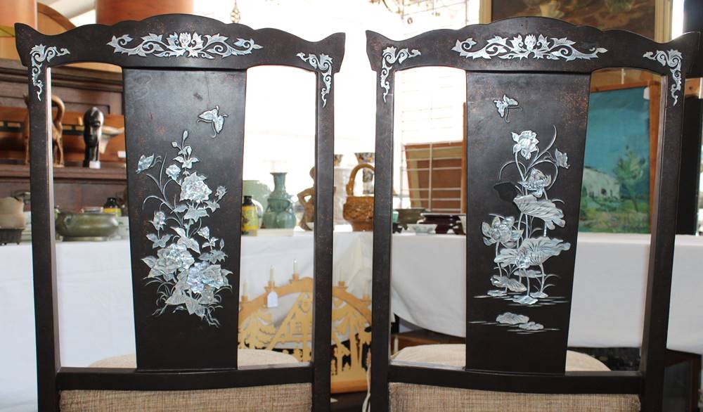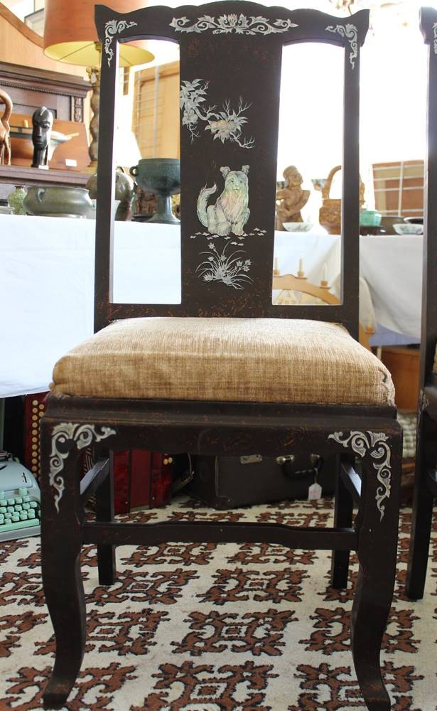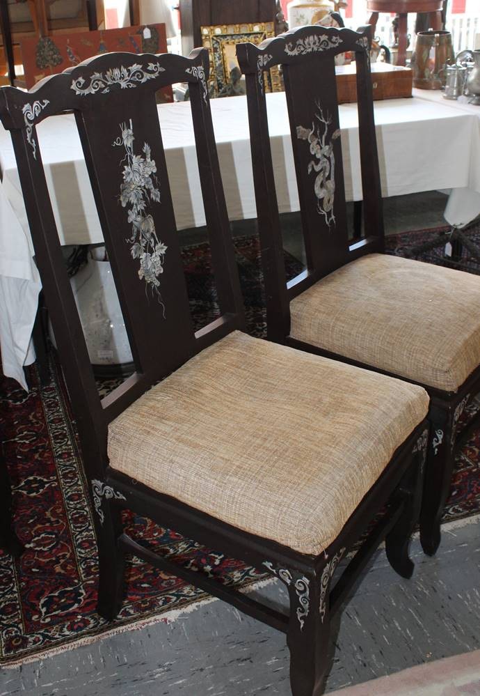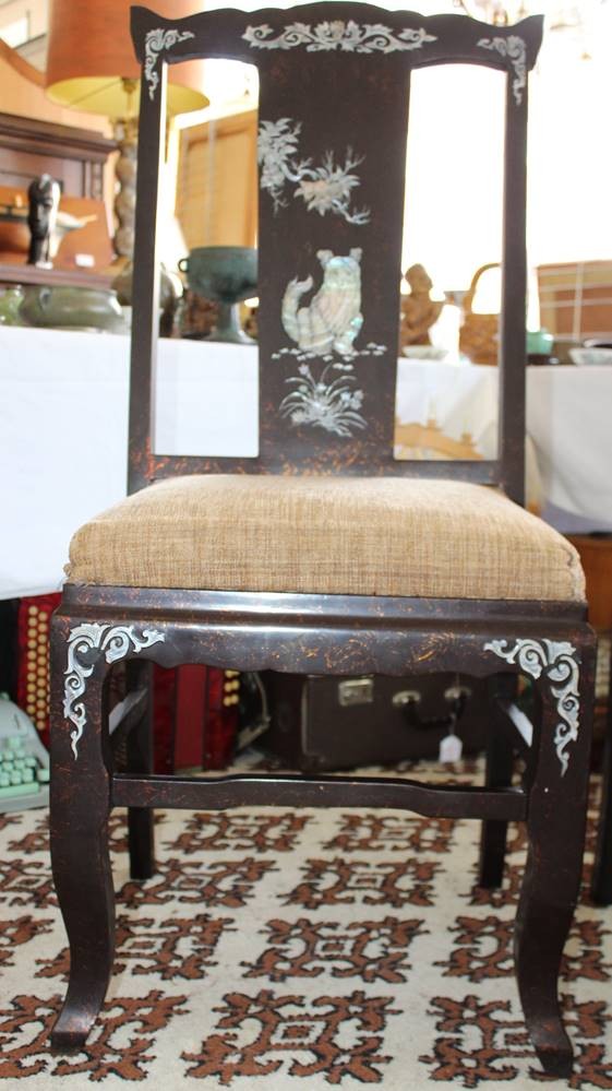 4x Stühle, China, Perlmuttauflagen, Lack, teilw. Gebrauchsspuren, je ca. H-109,5cm B-47cm Sh-47cm [1]