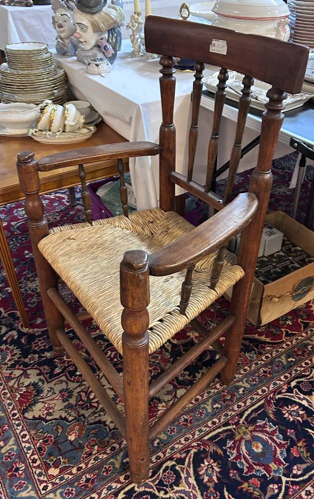 Armlehnstuhl, Sitz Bastgeflecht, Gebrauchsspuren