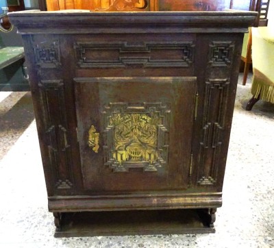 +barockes Wandschränkchen, Eiche, Tür mit Messingauflagen, um 1740, H-88 cm, B-71 cm, T29 cm