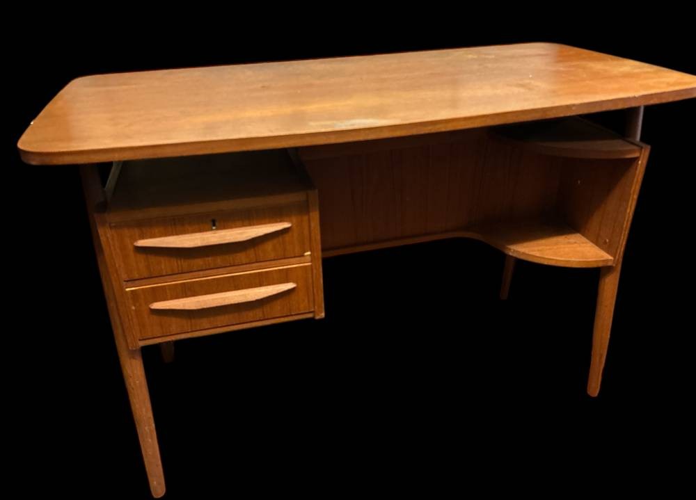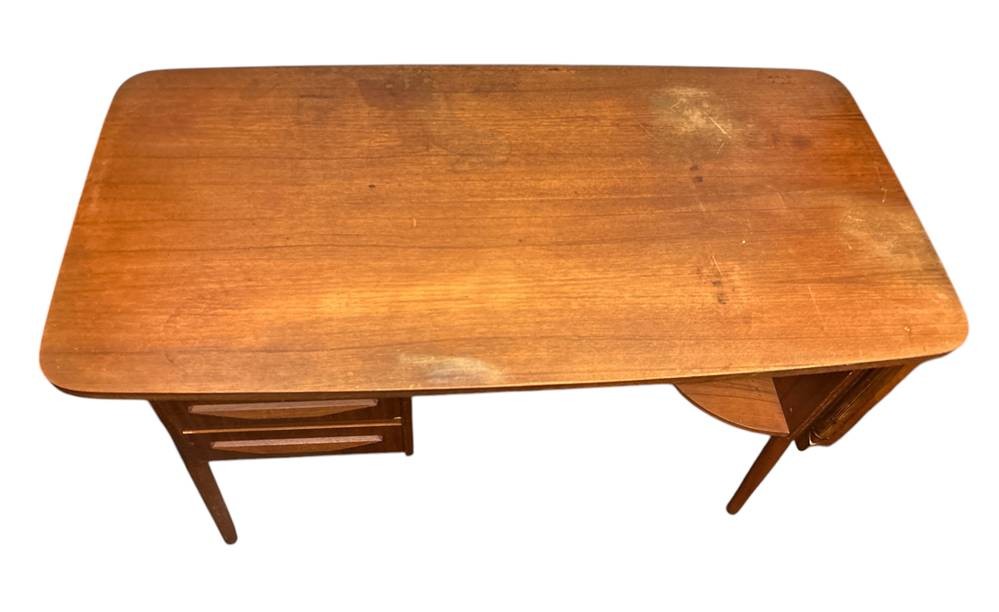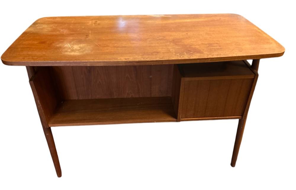 Dänischer kl. Schreibmaschinentisch, gestempelt Denmark-Tieber gaard Desk von Gunnar Nielsen, gut berhalten, Platte etwas fleckig, H-72 cm, B109 cm, T-55 cm,