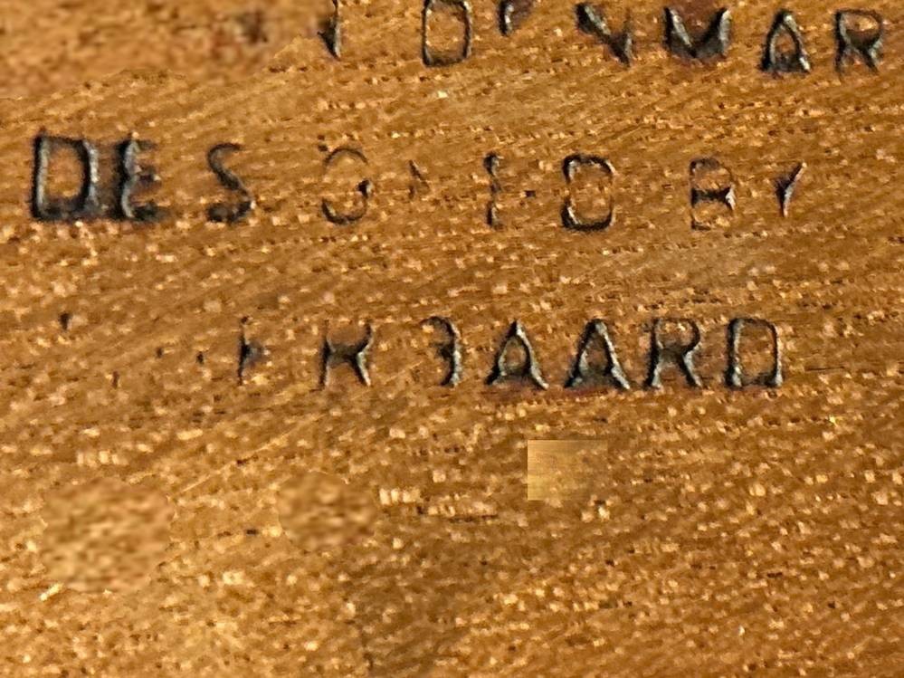 Dänischer kl. Schreibmaschinentisch, gestempelt Denmark-Tieber gaard Desk von Gunnar Nielsen, gut berhalten, Platte etwas fleckig, H-72 cm, B109 cm, T-55 cm, [1]