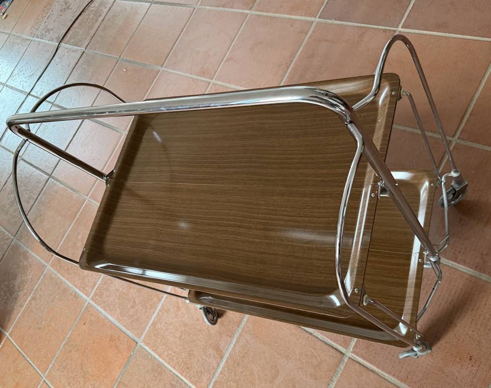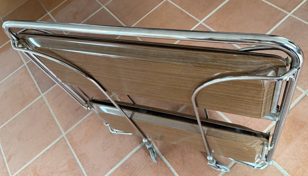 Dinett (klappbarer Servierwagen,) wohl von Bremshey&Co, B- 67,5 cm H- 78 cm - Ablagefläche 60,5 x 41,5 cm , ca. 8 cm zusammengeklappt, wohl 60/70er Jahre [1]
