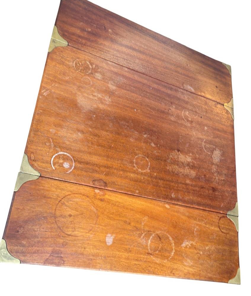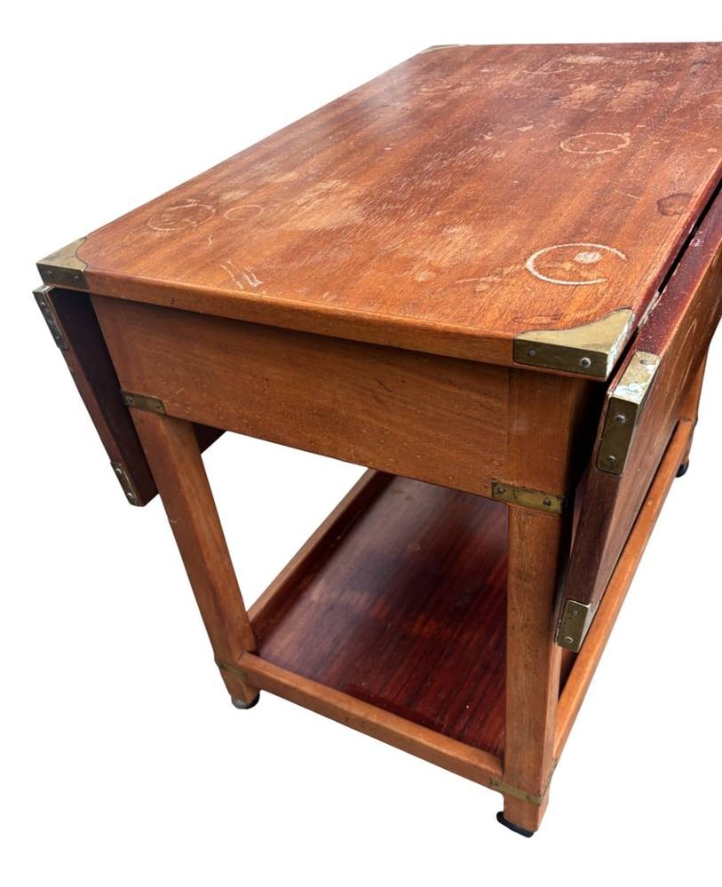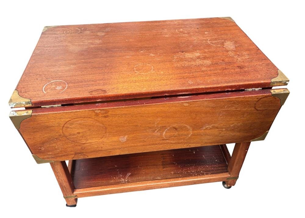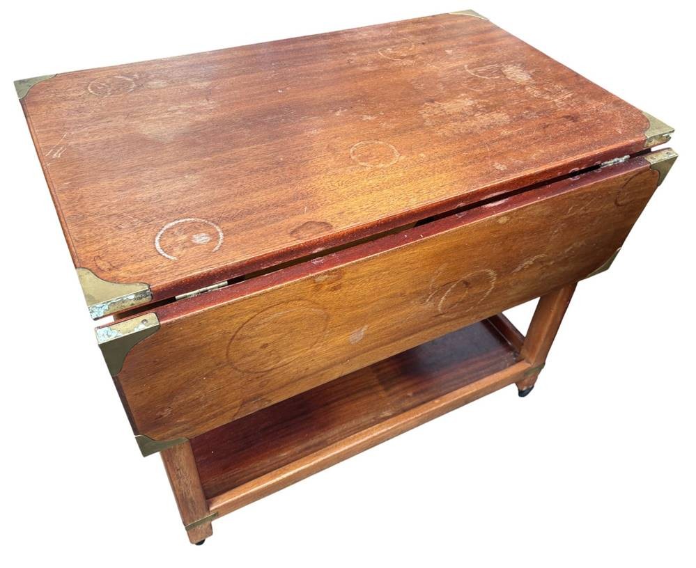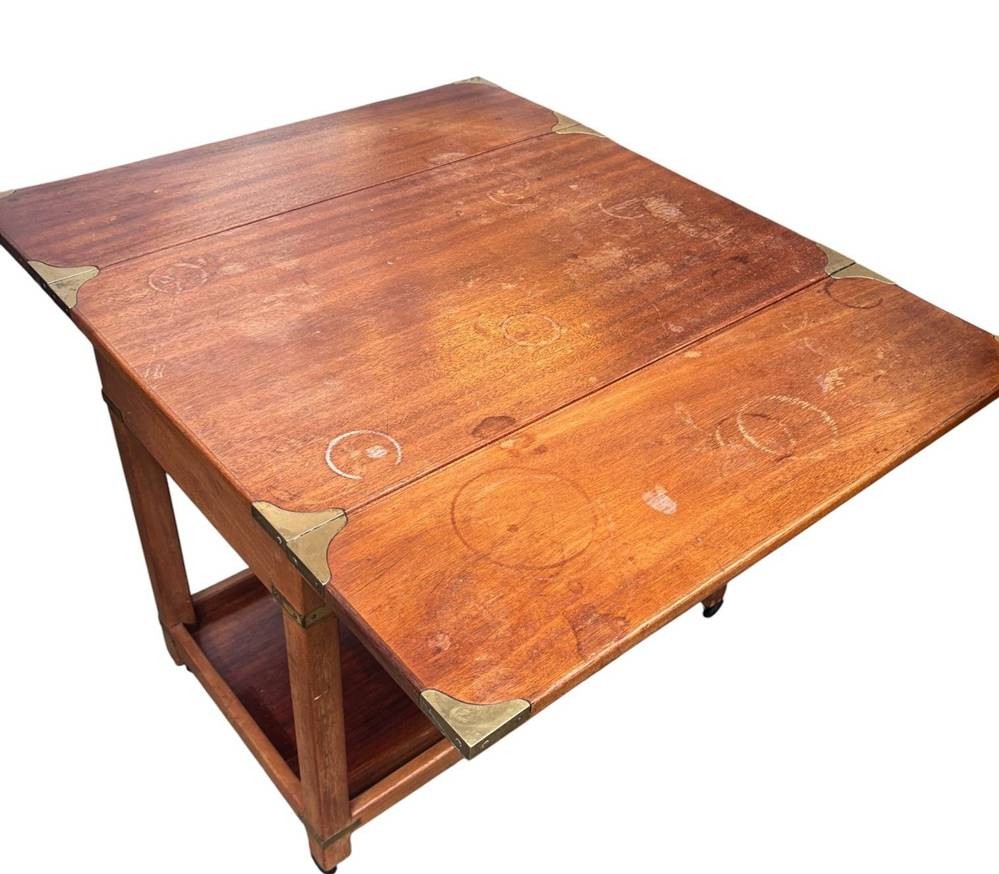engl. Mahagoni "Breakfast" Tisch auf Rollen, Messingbeschlägen, Lasur fleckig
