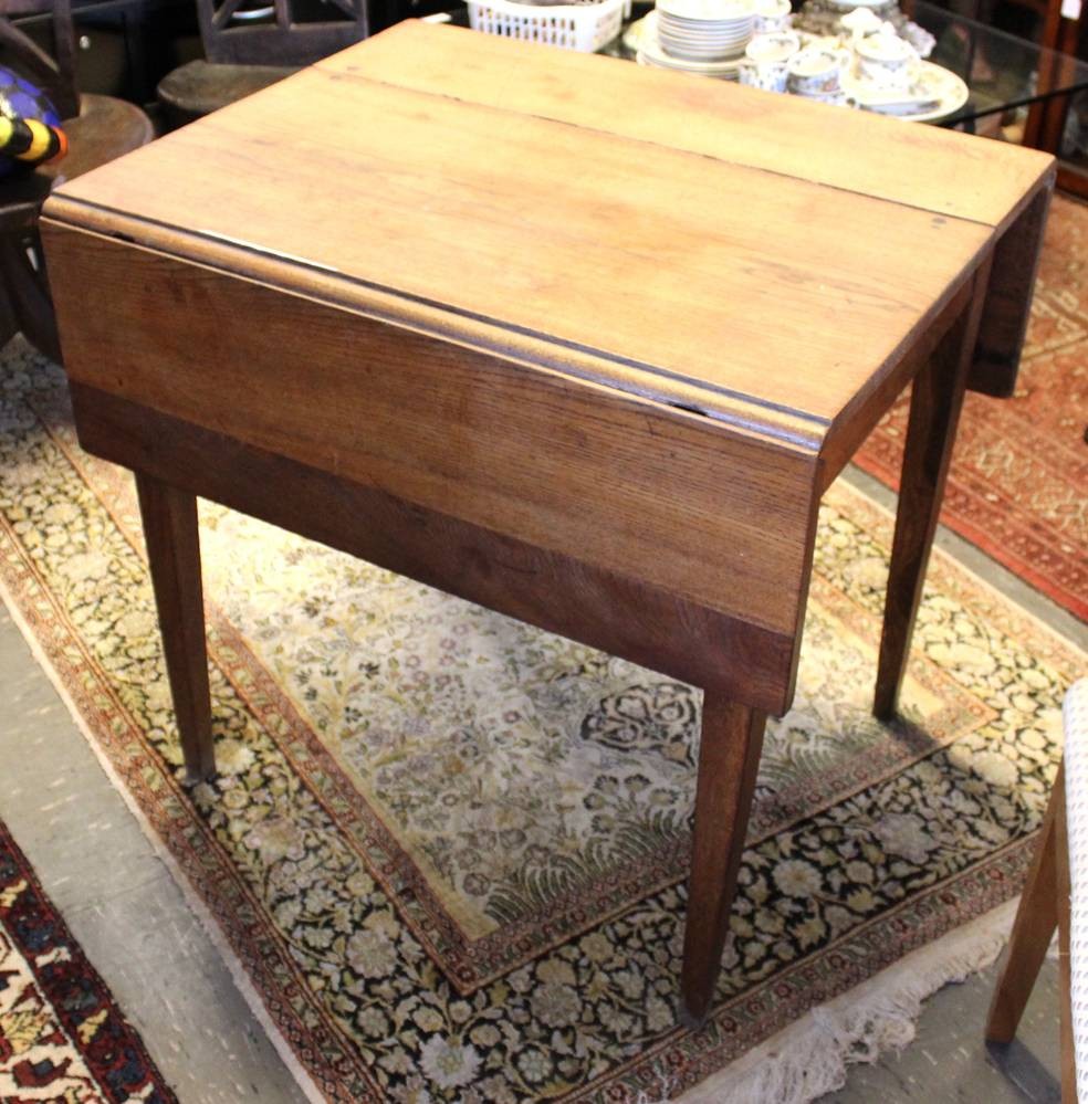 Gateleg-Tisch, wohl England, älter, ein Schub, Hölzer zum festsetzten der Seiten fehlen, ca. H-78cm B-80cm, T-63-115cm [1]