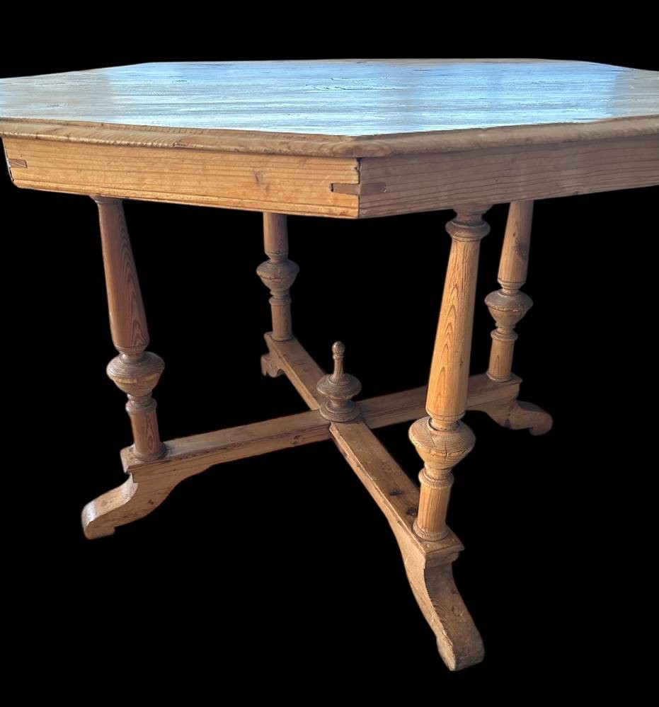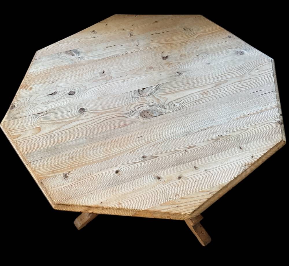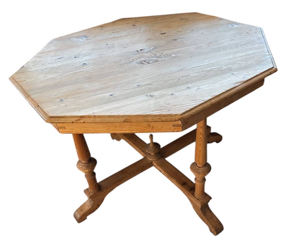 gr. achteckiger Natur-Weichholz-Tisch, leichte Gebrauchsspuren, 19.Jhd., H-73 cm, D-100 cm [1]