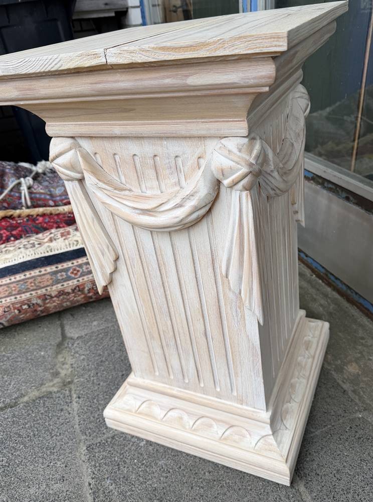 gr. Holz-Podest, verziert, H-72 cm, 42x42 cm, Platte mit Spannungsriss [1]