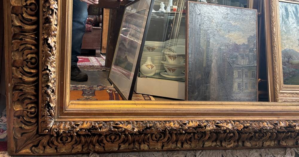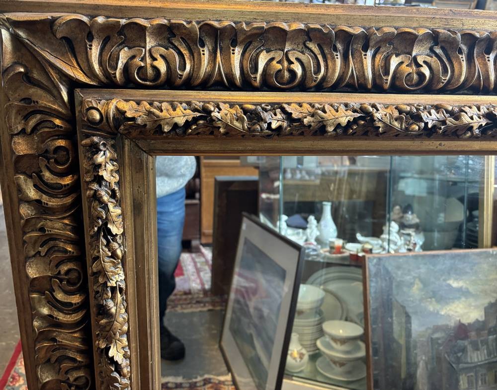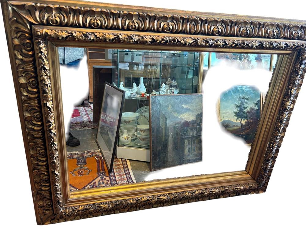 grosser Wandspiegel mit breitem Stuckrahmen, Rahmen alt und gut erhalten, RG 105x137 cm, ca. 25 kg [1]