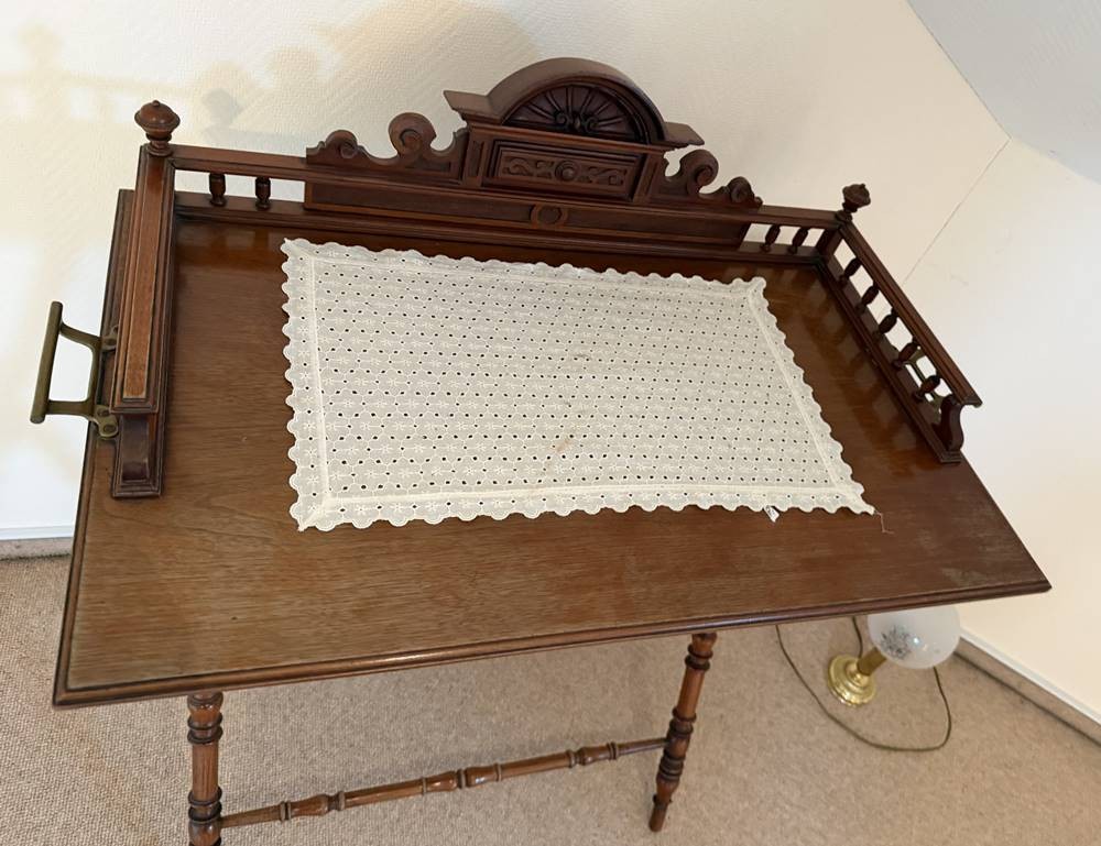 Gründerzeit-Serviertisch, abnehmbares Tablett, klappbares Gestell, Gebrauchsspuren, 1 Seite Galerie geklebt, H-99 cm, T-47 cm, B-78 cm [1]