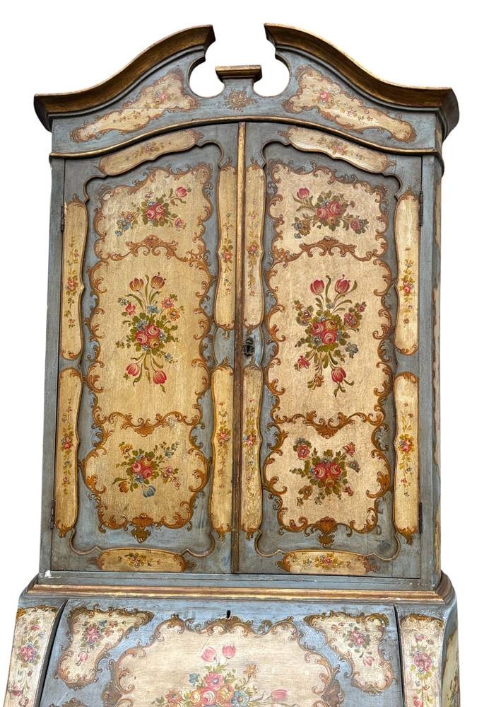 italienischer Barock-Sekretär, Bücherschrank, Blumenmalerei, Holz seitlich mit Spannungsriss, Alters-und Gebrauchsspuren,, H-215 cm, B-80 cm, T-unten 48 cm [1]