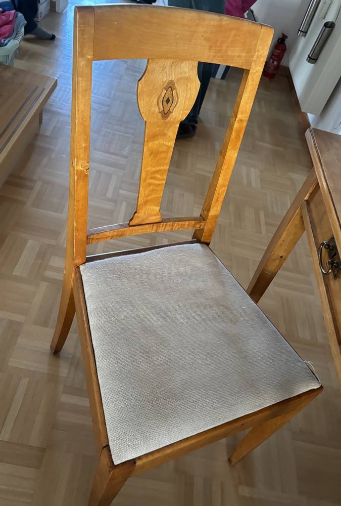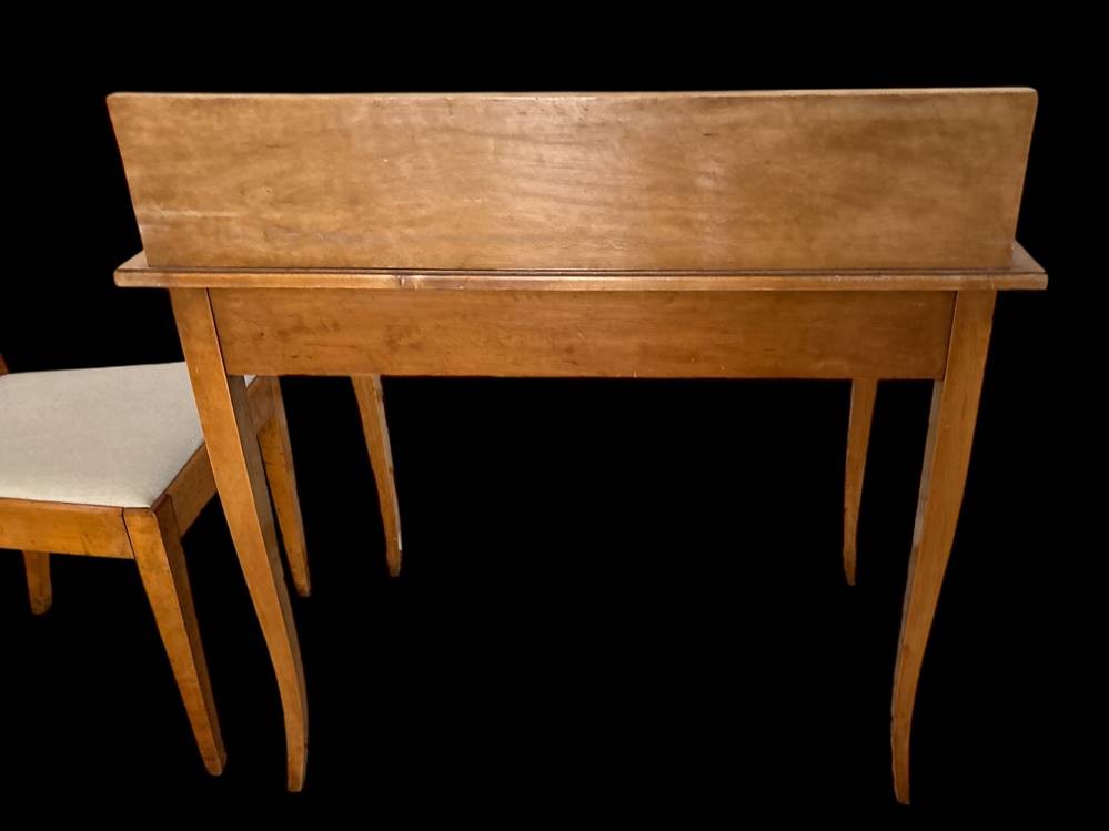 kl. Schreibtisch mit passenden Stuhl, wohl Birke, H-92 cm maximal, 89x54 cm [1]