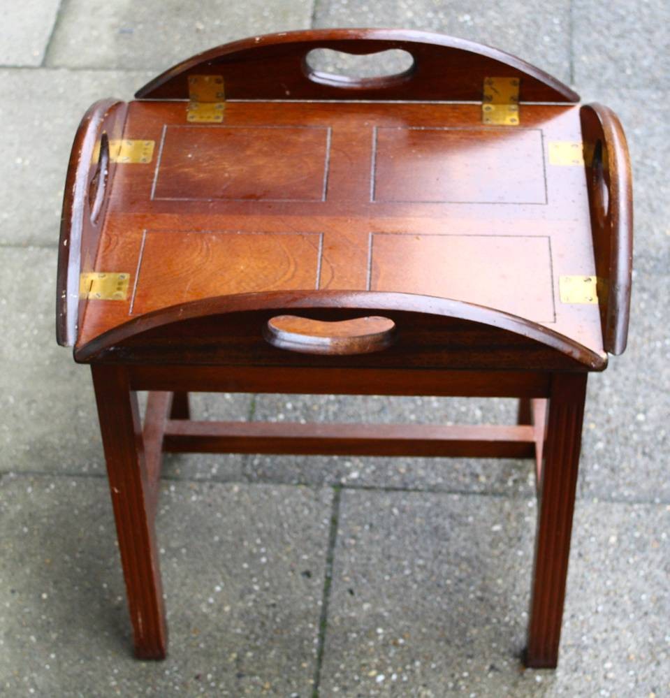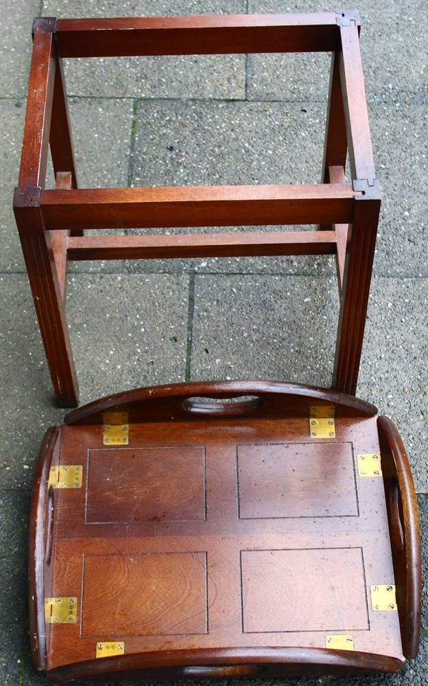 kl. Tablett-Tischchen, Mahagoni mit Messingbeschlägen, H-50 cm, 45x35 cm [1]