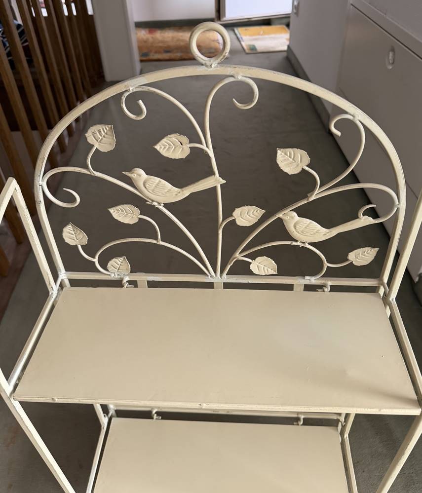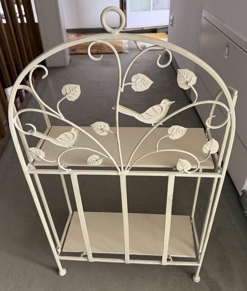 kl. vintage Blechregal mit Vögel, weiss lackiert, H-77 cm, B-45 cm [1]