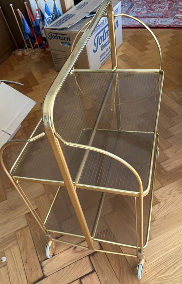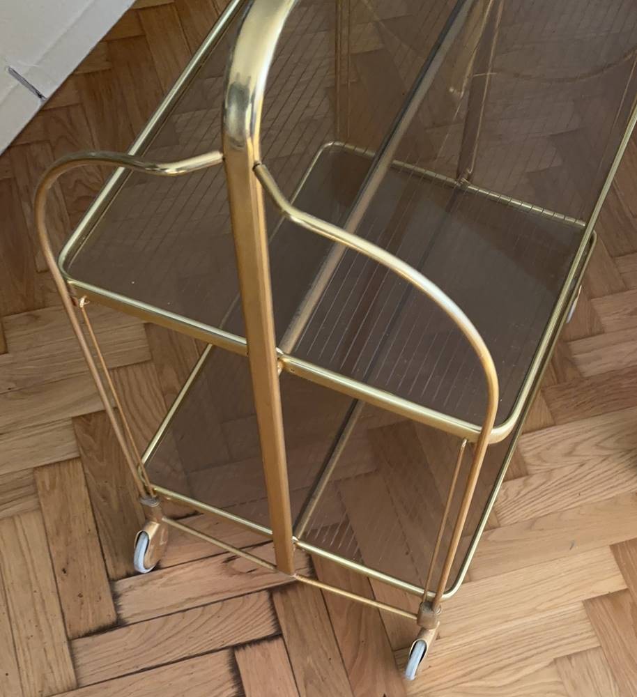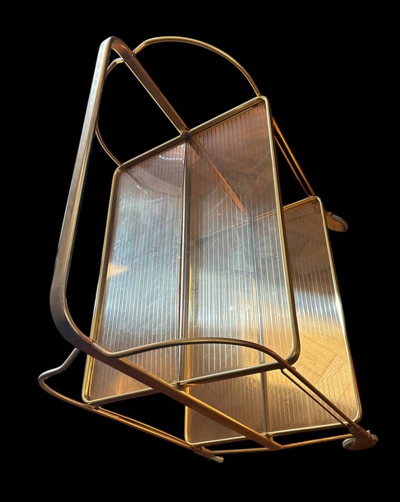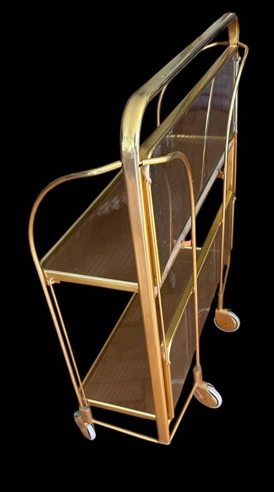klappbarer Jour-Wagen, Messing auf Rädern, Kunststoff-Platten