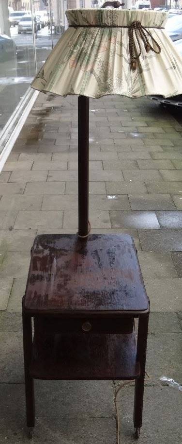 Lampentisch auf Rollen, um 1940, mit einer Schublade, H-minim. 150 cm, (Lampe ausziehbar). [1]