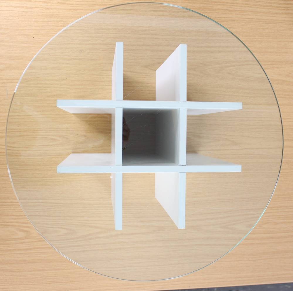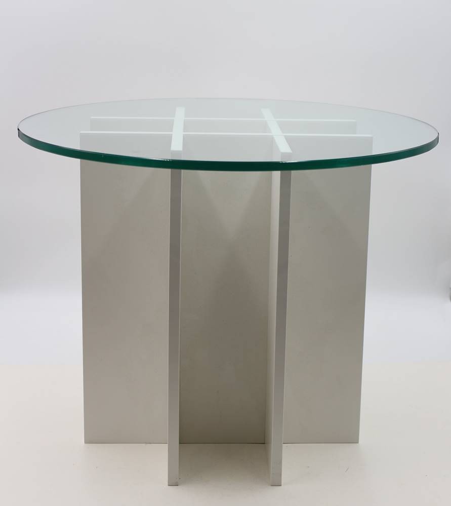moderner Beistelltisch, Glasplatte, ungemarkt, ca. H-38,5cm D-50cm [1]