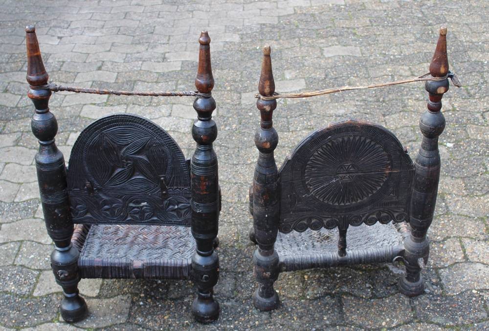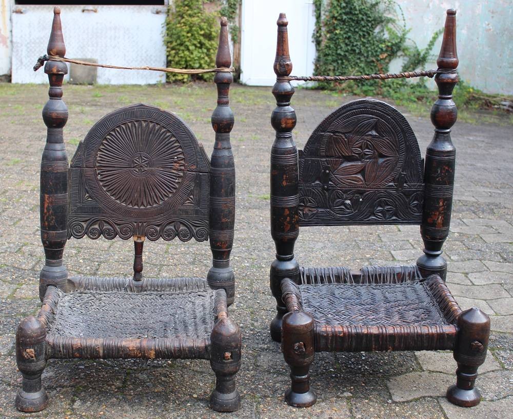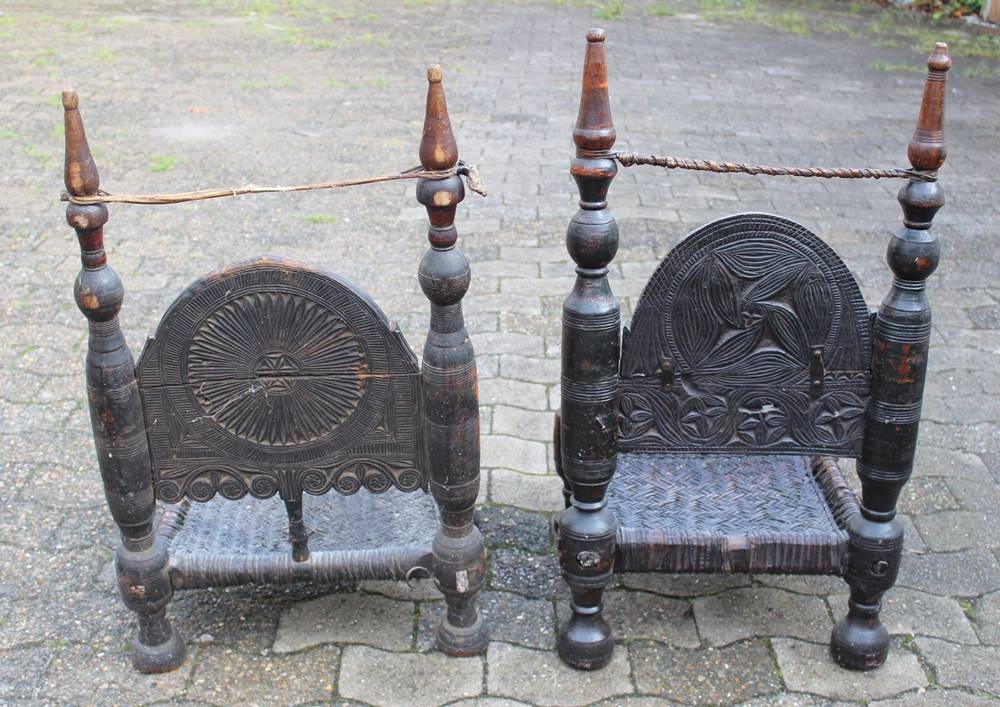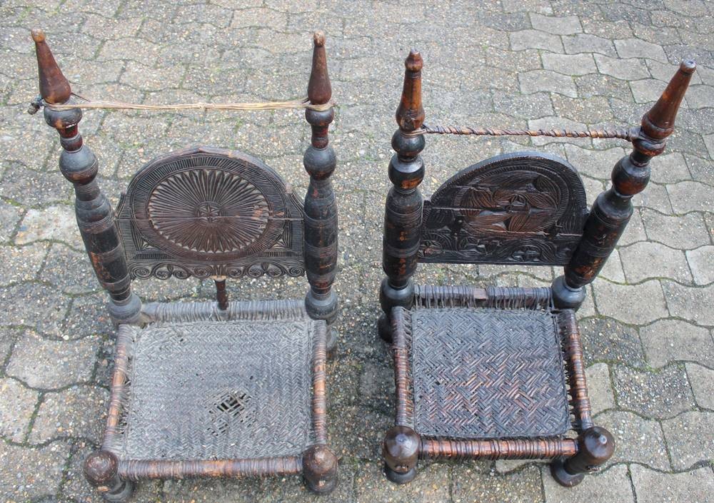 Paar antike Beduinen-Stühle, je mit Altersspuren, ca. H-84cm B-40cm Sh-18cm [1]
