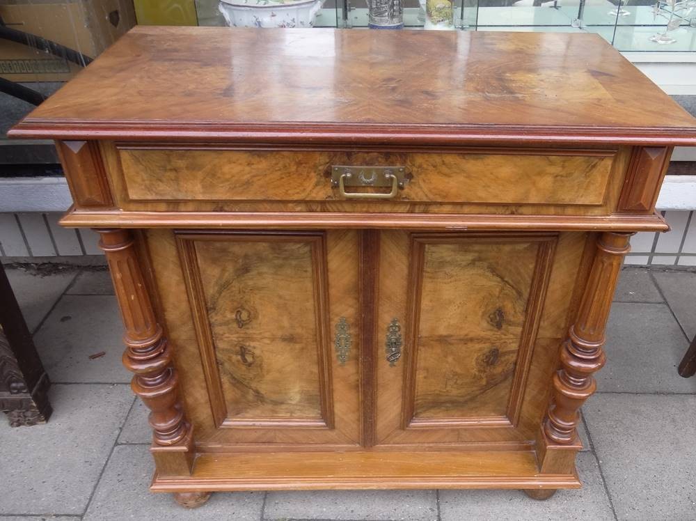 Spiegel-Unterschrank, Mahagonifurnier, Platte Gebrauchsspuren, H-85 cm, B-83 cm, T-45 cm [1]