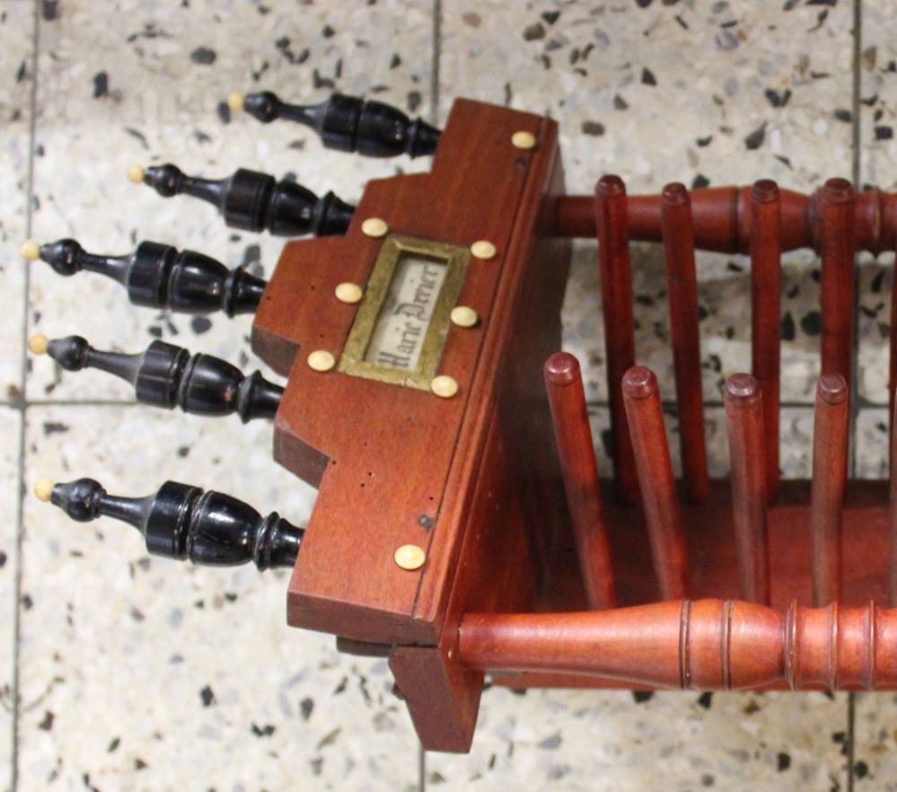 Teller-Regal, 19. Jhd., Namenschild, Altersspuren, wurmstichig, ca. H-86cm B-30cm T-17,5cm [1]