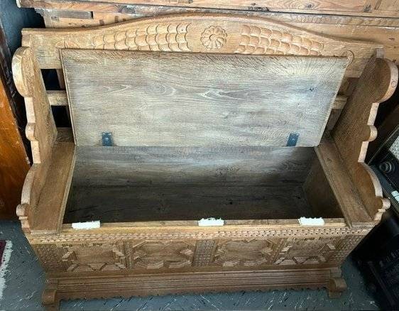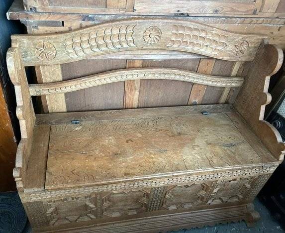 Truhenbank mit Kerbschnitzerei, 19. Jhd., gute Erhaltung, ca. H-92cm B-118cm T-54cm [1]