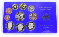 56 D-Mark-Sätze, 7 pro Prägeanstalt, zus. 598,08 DM, in Holzkasten
