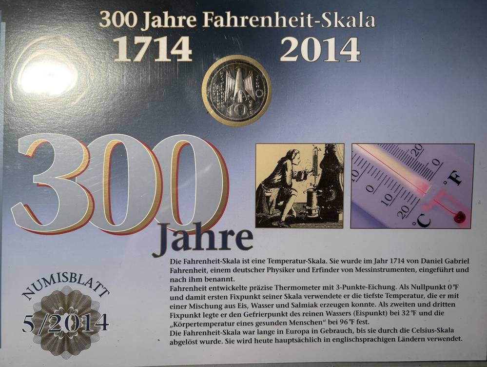 10 Euro Numisbrief 300 J. Fahrenheit 2014 in Display [1]
