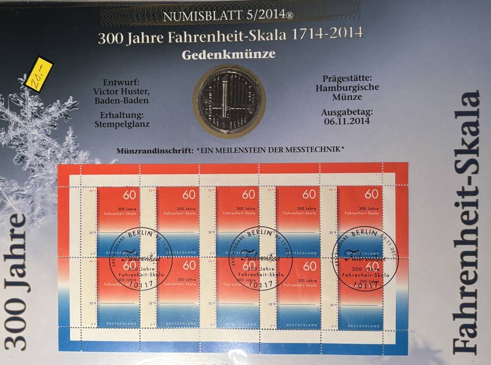 10 Euro Numisbrief 300 J. Fahrenheit 2014 in Display