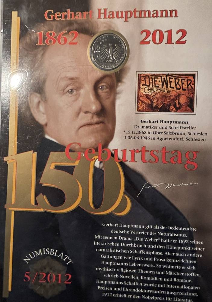 10 Euro Numisbrief G. Hauptmann 2012, in Display [1]