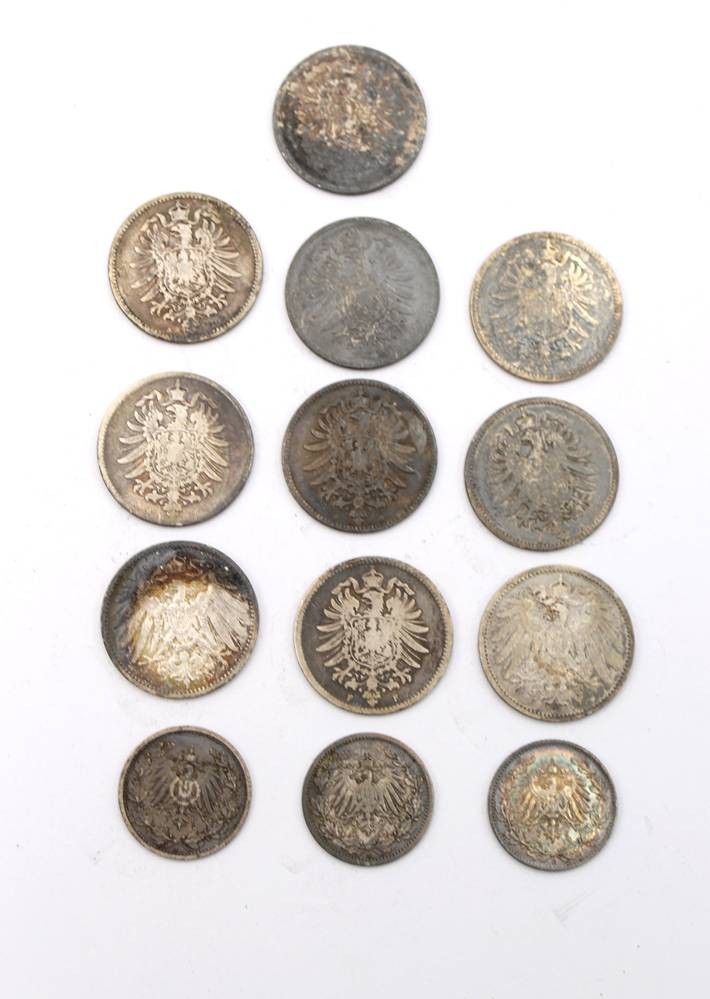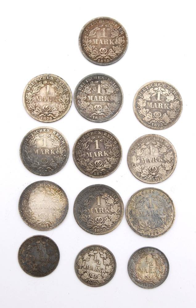 10x 1 Mark sowie 3x 1/2 Mark, Deutsches Reich ab 1874, Silber, 61,6gr. [1]
