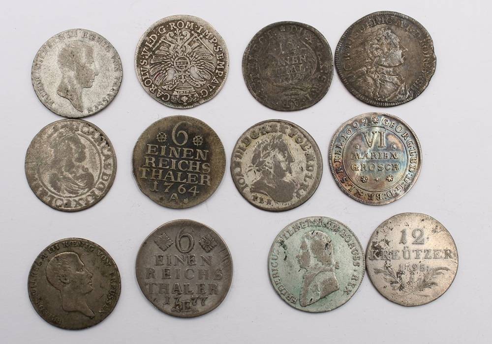 12x altdeutsche Münzen, alle 18.Jhd. und Silber, zus. 51,3 gr. [1]