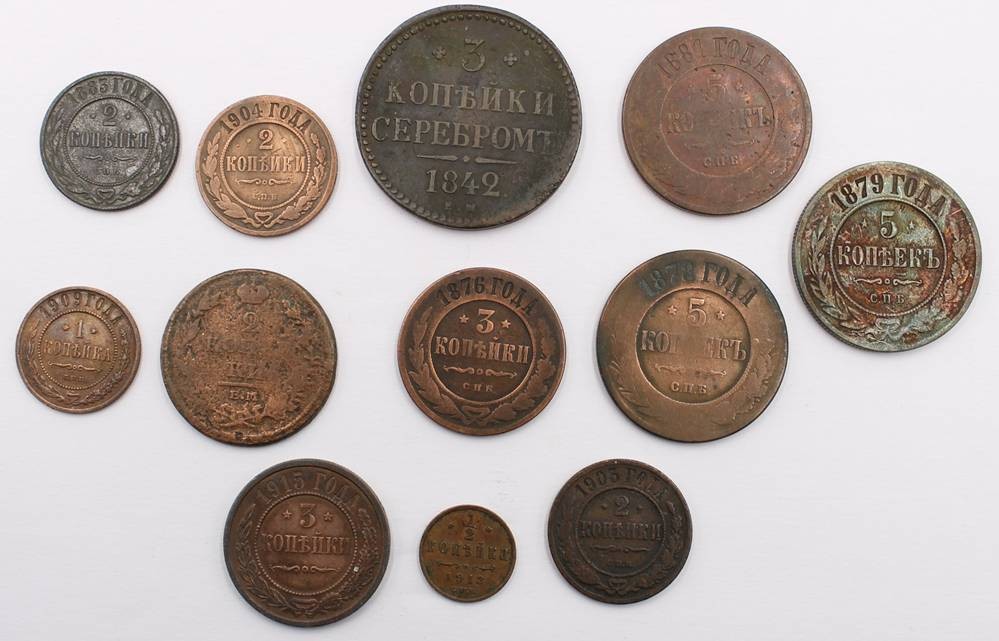 12x russische Kleinmünzen ab ca. 1842, [1]