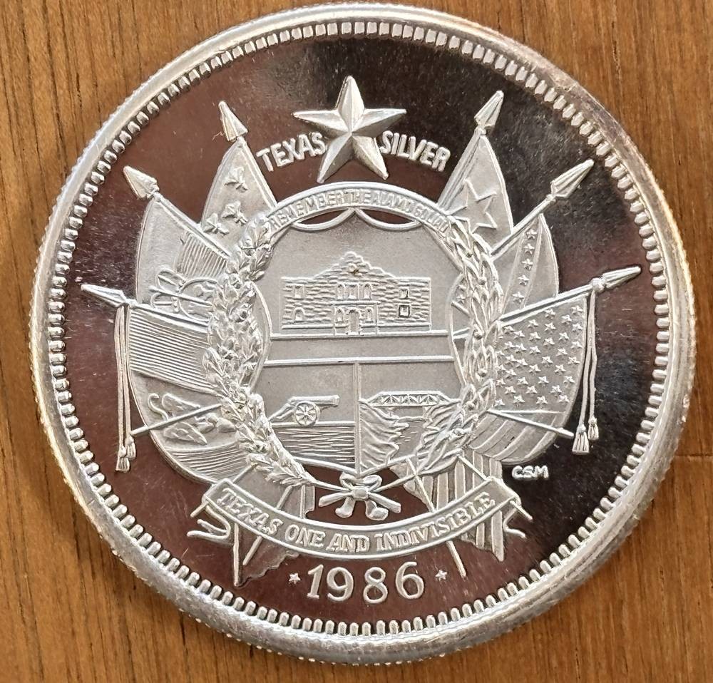 1986 "State of Texas" Silbermedaille. Eine Troy Unze Feinsilber-999-, Erinnerungsmedaille anlässlich der 150 J. Unabhängigkeit von Texas von Mexico, PP [1]