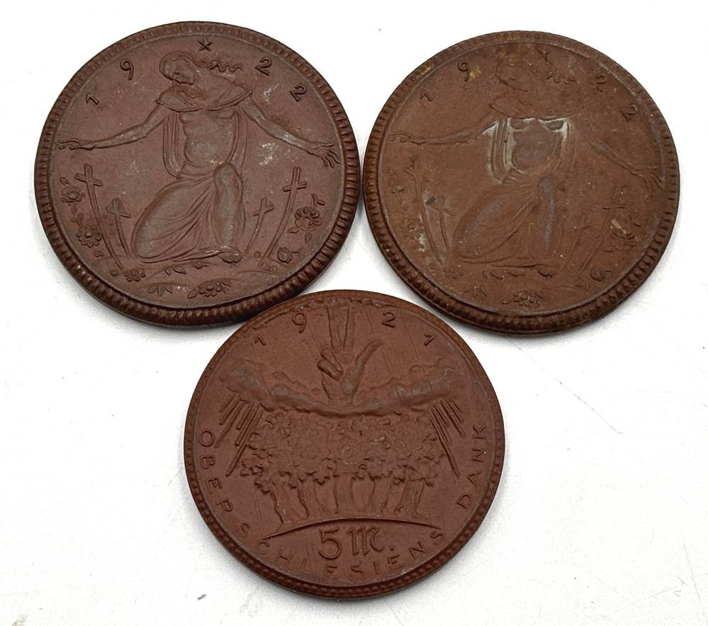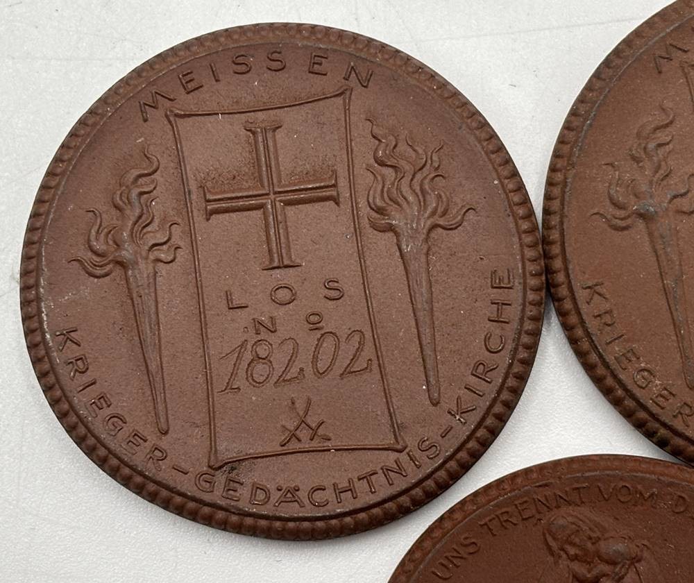 1x 5 Mark, 2x Lose für den Krieger-Verein, 1921/1922, Meissen Böttgersteinzeug-Plaketten, D-4 cm [1]