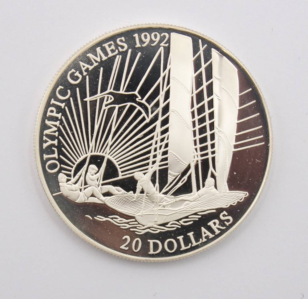 20-Dollar-Gedenkmünze, Kiribati, 1992, Olympischen Spiele in Barcelona, 925er Silber, ca. 31,5gr., D-3,8cm [1]