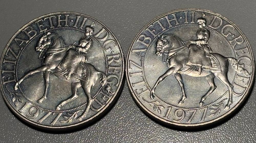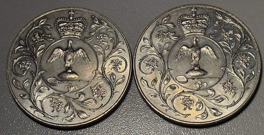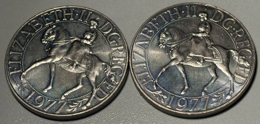 2x 1 Crown Gedenkmünze, Elizabeth II, Grossbritannien, 1977 [1]