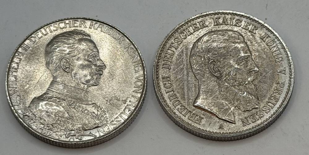 2x 2 Mark, Preussen 1888 und 1913, Friedrich und Wilhelm II