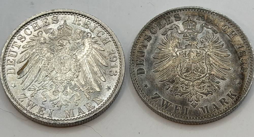 2x 2 Mark, Preussen 1888 und 1913, Friedrich und Wilhelm II [1]