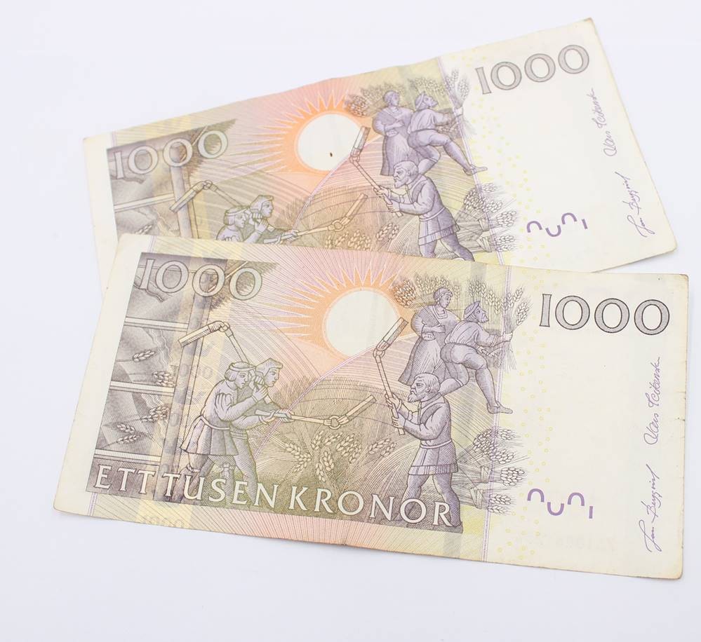 2x Banknoten je 1000 Kronor, Schweden [1]