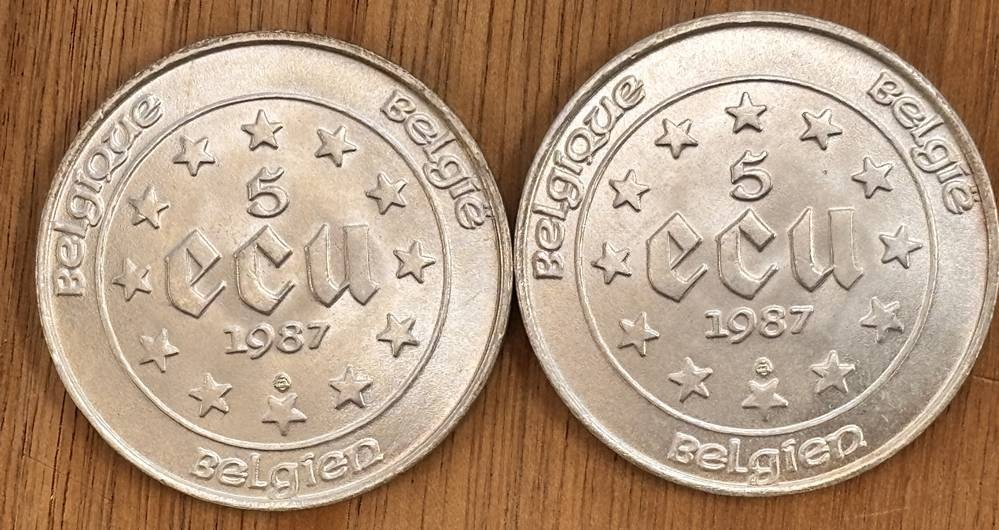 2x Belgien 5 Ecu Silber Kaiser Karl V 1987, zus. ca. 46 gr [1]