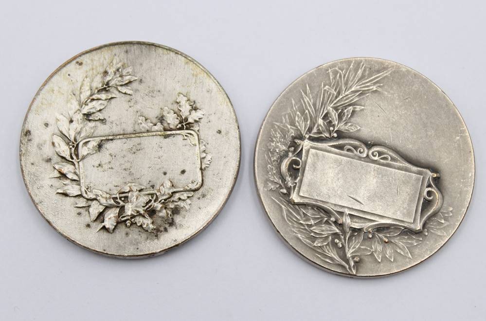 2x Medaillen um 1900, Frankreich, wohl Bronze versilbert, je D-4,5cm [1]
