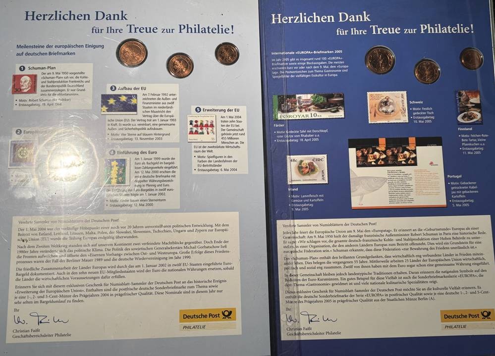 2x Numisbriefe "Europa" mit Kleinmünzen, DP Treu
