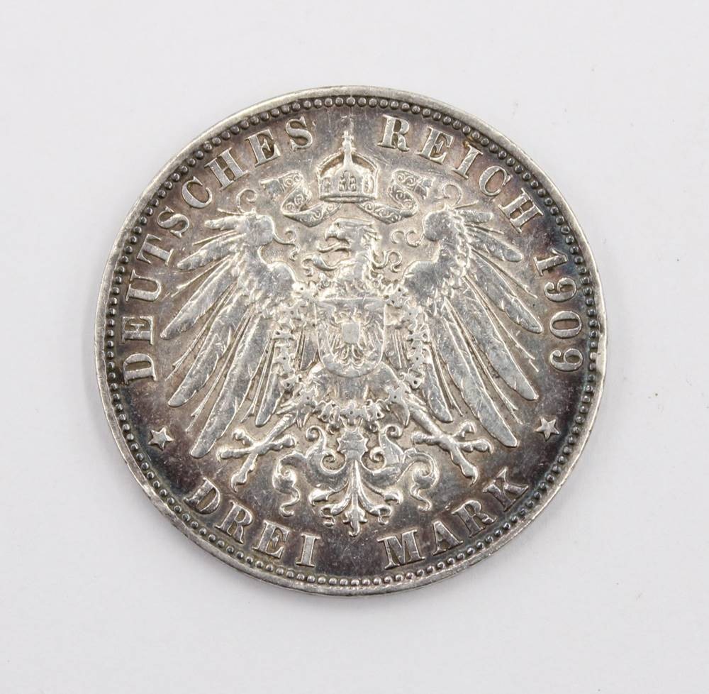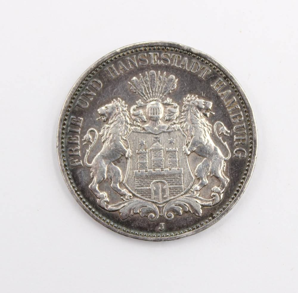 3 Mark Hamburg 1909 J, Stadtwappen, Silber, 16,7gr., D-3,3cm [1]