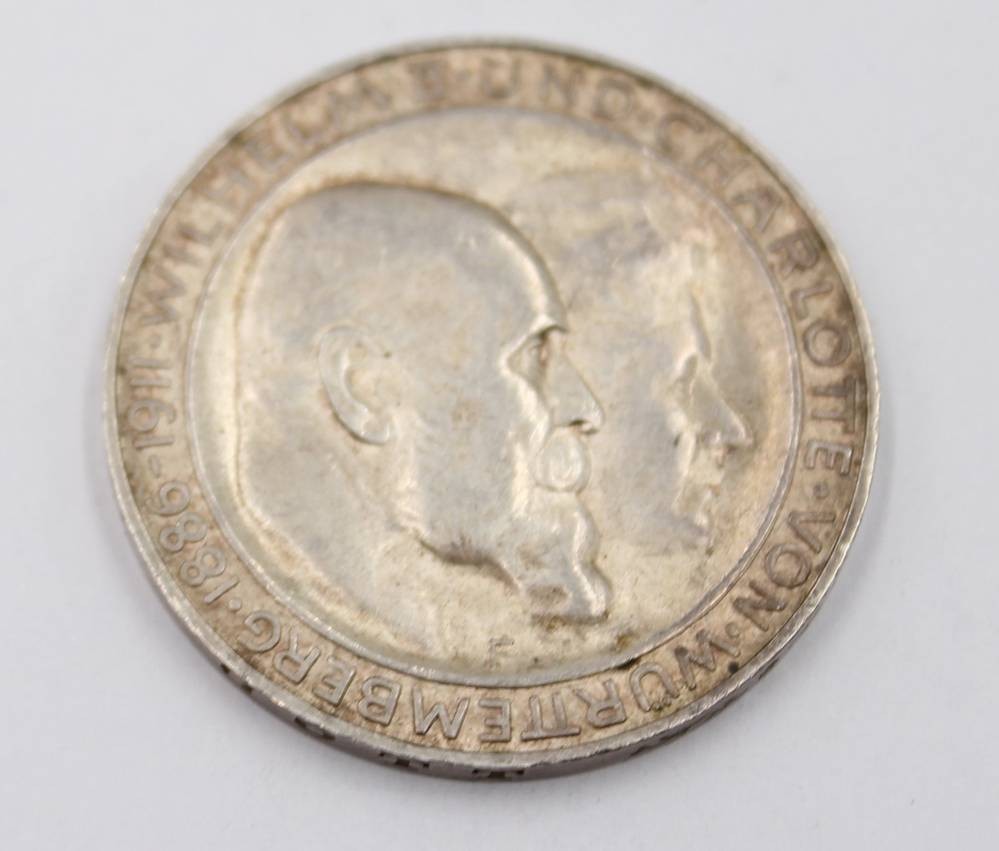 3 Mark Stück, Silberhochzeit des Königspaares von Württemberg im Jahr 1911, 16,72gr., D-3,3cm [1]
