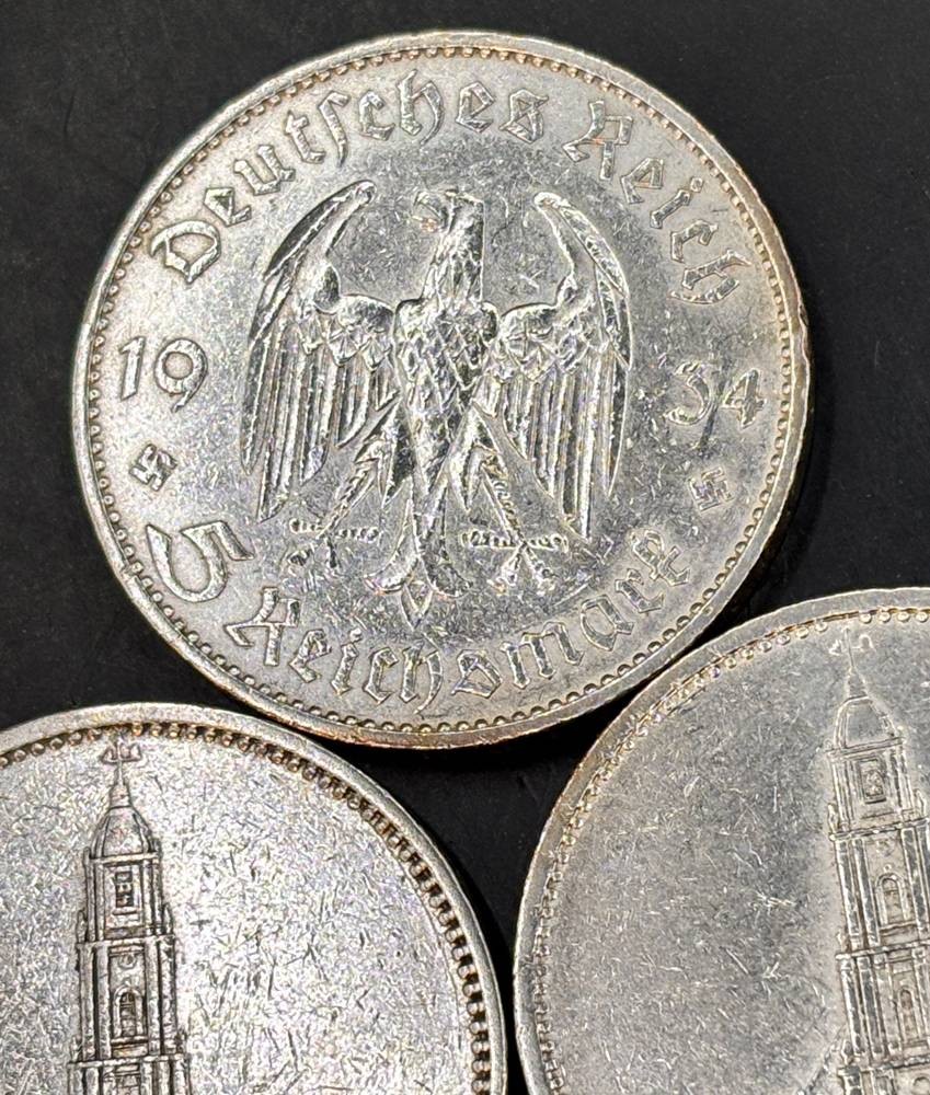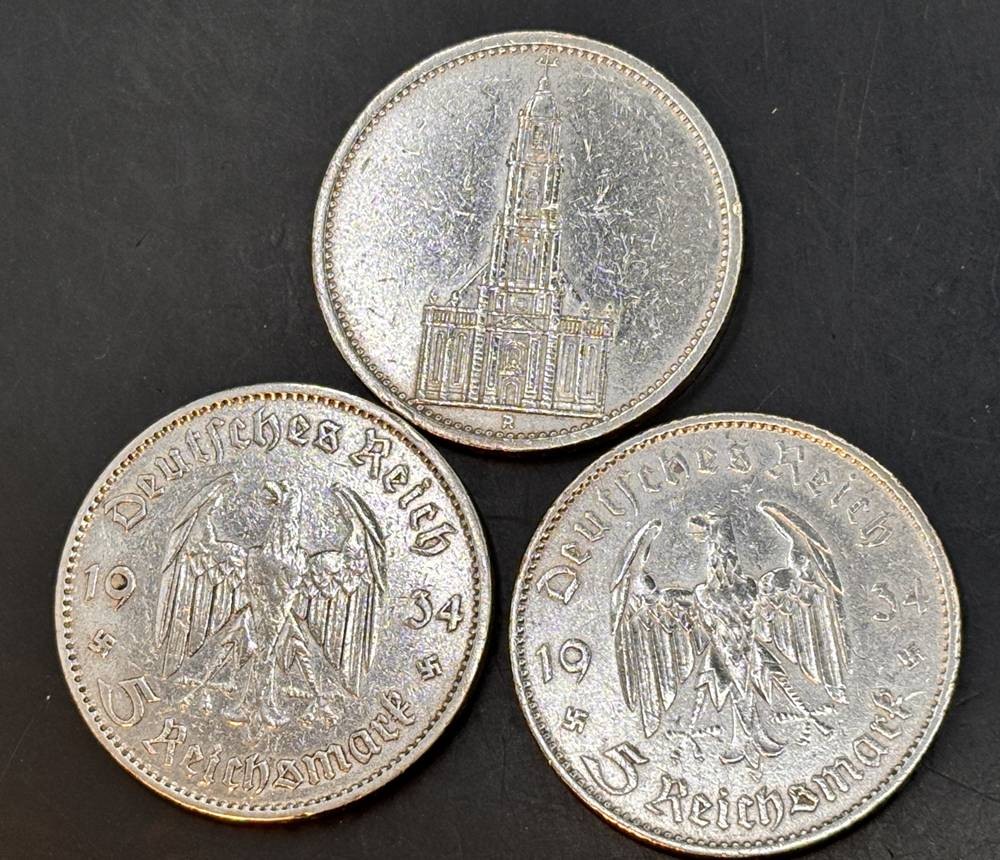 3x 5 Reichsmark 1934, Garnisonskirche, Silber