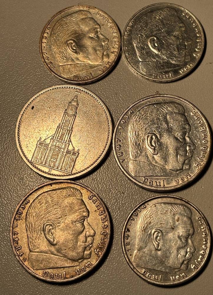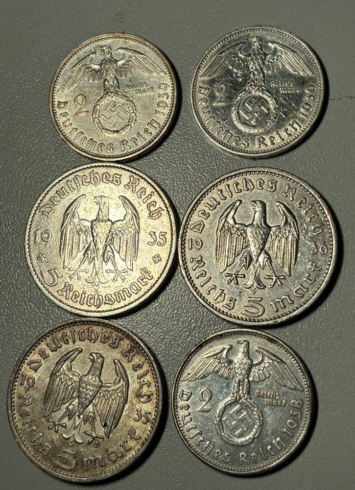 3x 5 Reichsmark, 3x 2 Reichsmark, 3.Reich, 1930-er Jahre