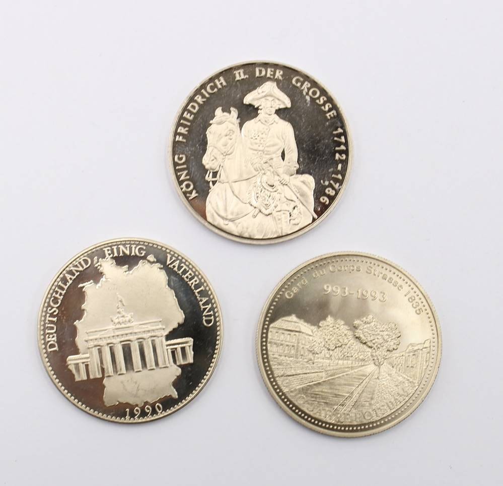 3x div. Gedenkmedaillen, neuzeitl., versilbert, ca. D-40cm