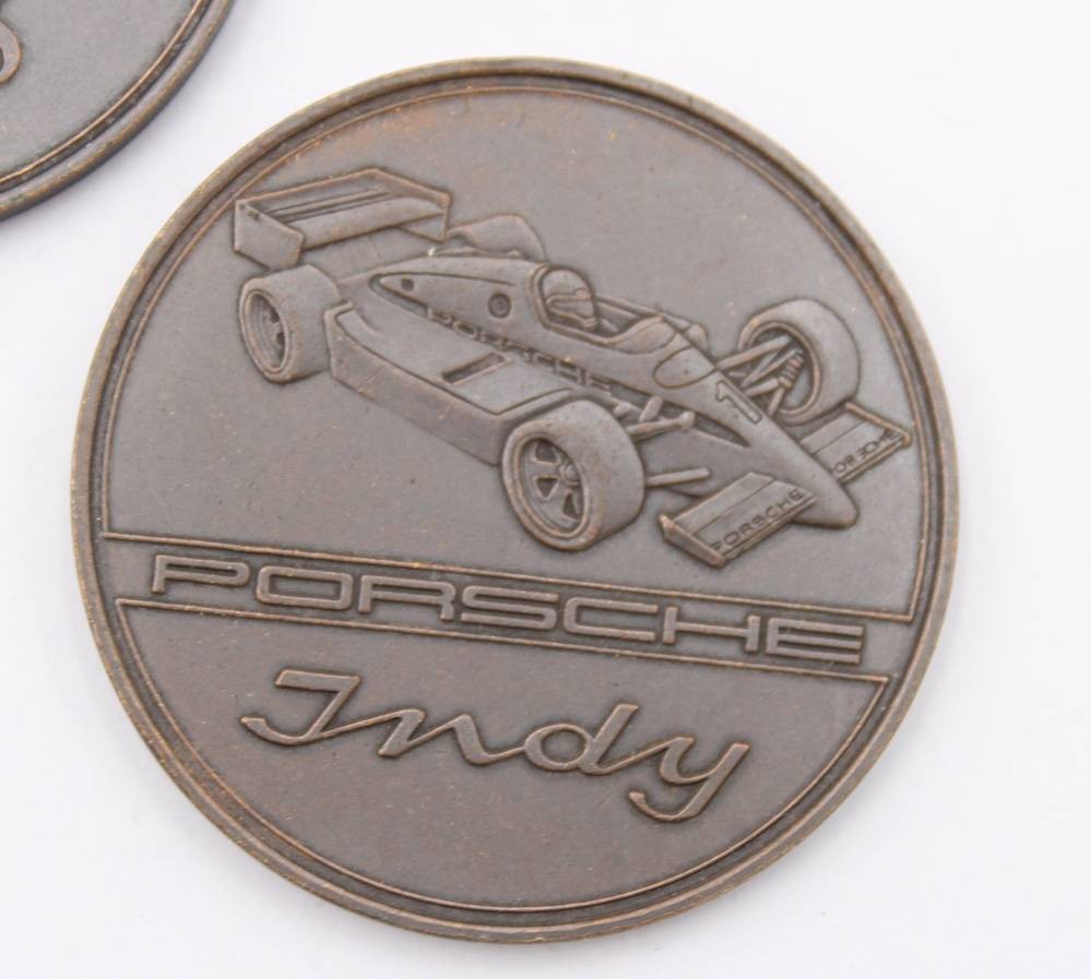 3x Porsche Indy - Medaillen aus dem Jahr 1988, Bronze, ca. D-3,8cm [1]