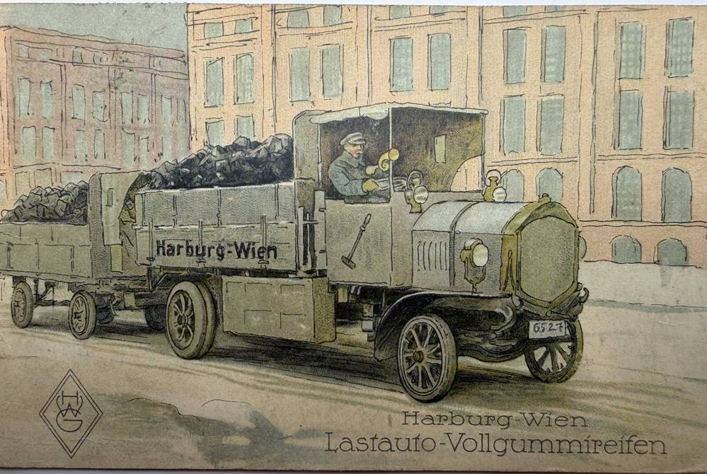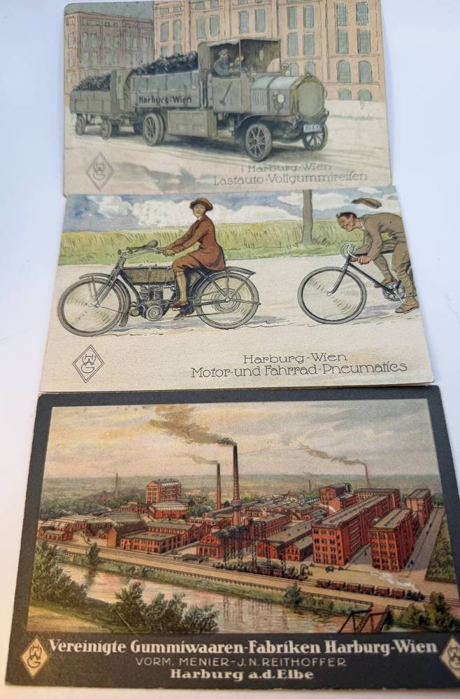 4 Werbe-Postkarten und 4 Briefumschläge, Gummiwerke Harburg-Wien, später Phoenix AG [1]
